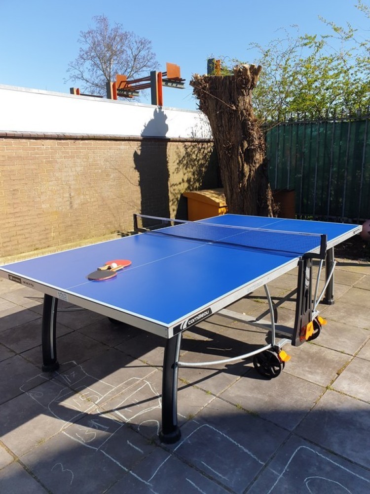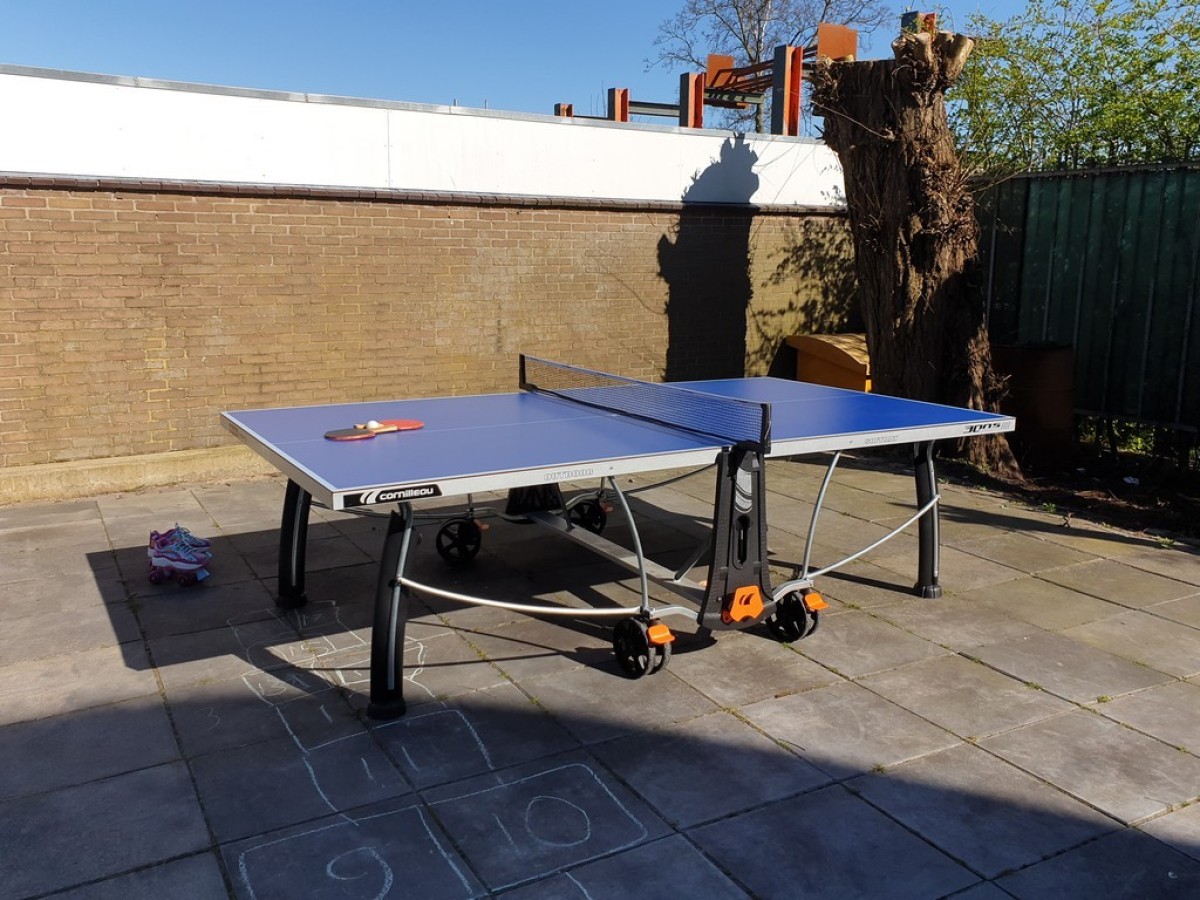 Het leuke aan deze tafel is dat er ook een dubbelspel gespeeld kan worden. huur daarvoor een extra set batjes!