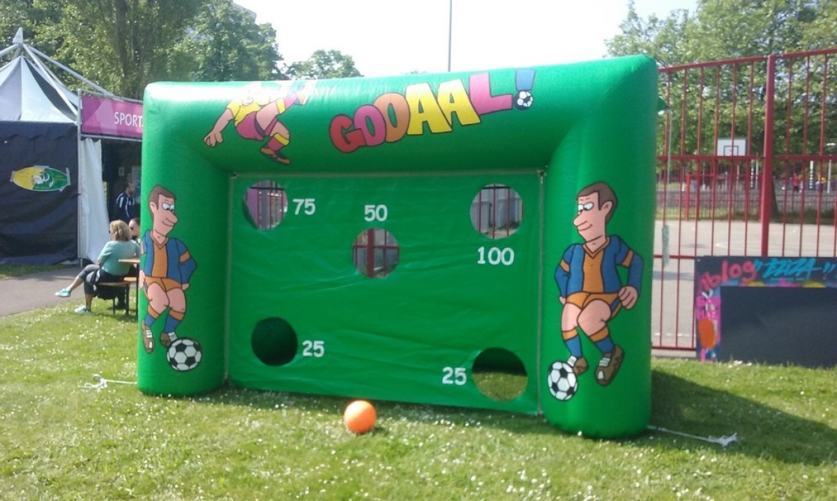 Levensgroot opblaasbaar doel dat te gebruiken is voor wedstrijdjes, snelheidsschieten of penaltyschieten. Daarnaast is het doel voorzien van klittenband waardoor en een soort gatendoek opgehangen kan worden voor doelschieten.